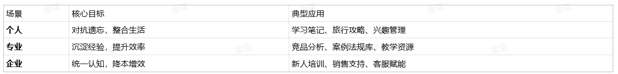 在个人层面,知识库是帮你对抗遗忘、整合生活的“第二大脑”。你的私人学习导师:无论是备考、学习一门新技能,还是阅读一本书,你可以将所有的笔记、资料、链接和想法都“喂“给知识库。复习时,你不再需要重读全文,而是可以直接向它提问:"根据我的笔记,请解释一下'第-性原理”,或者“帮我把这周的学习重点生成一套练习题”。